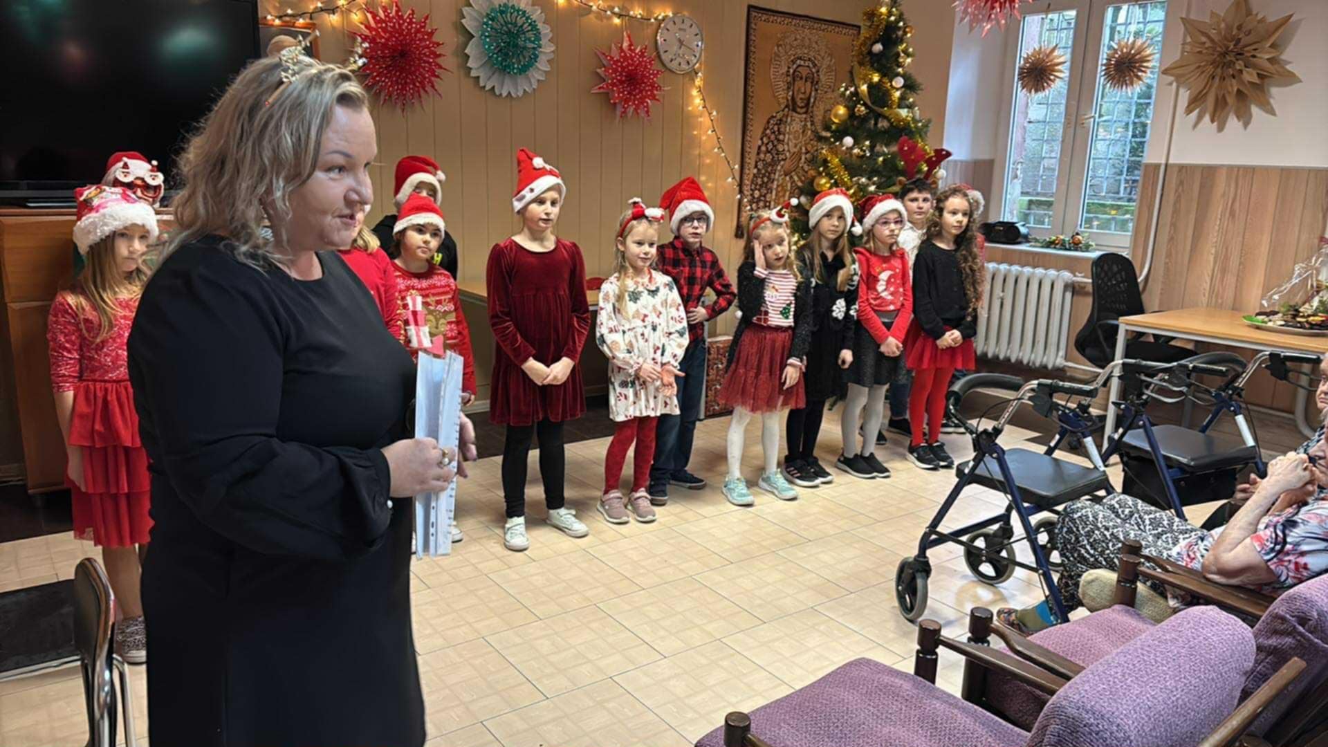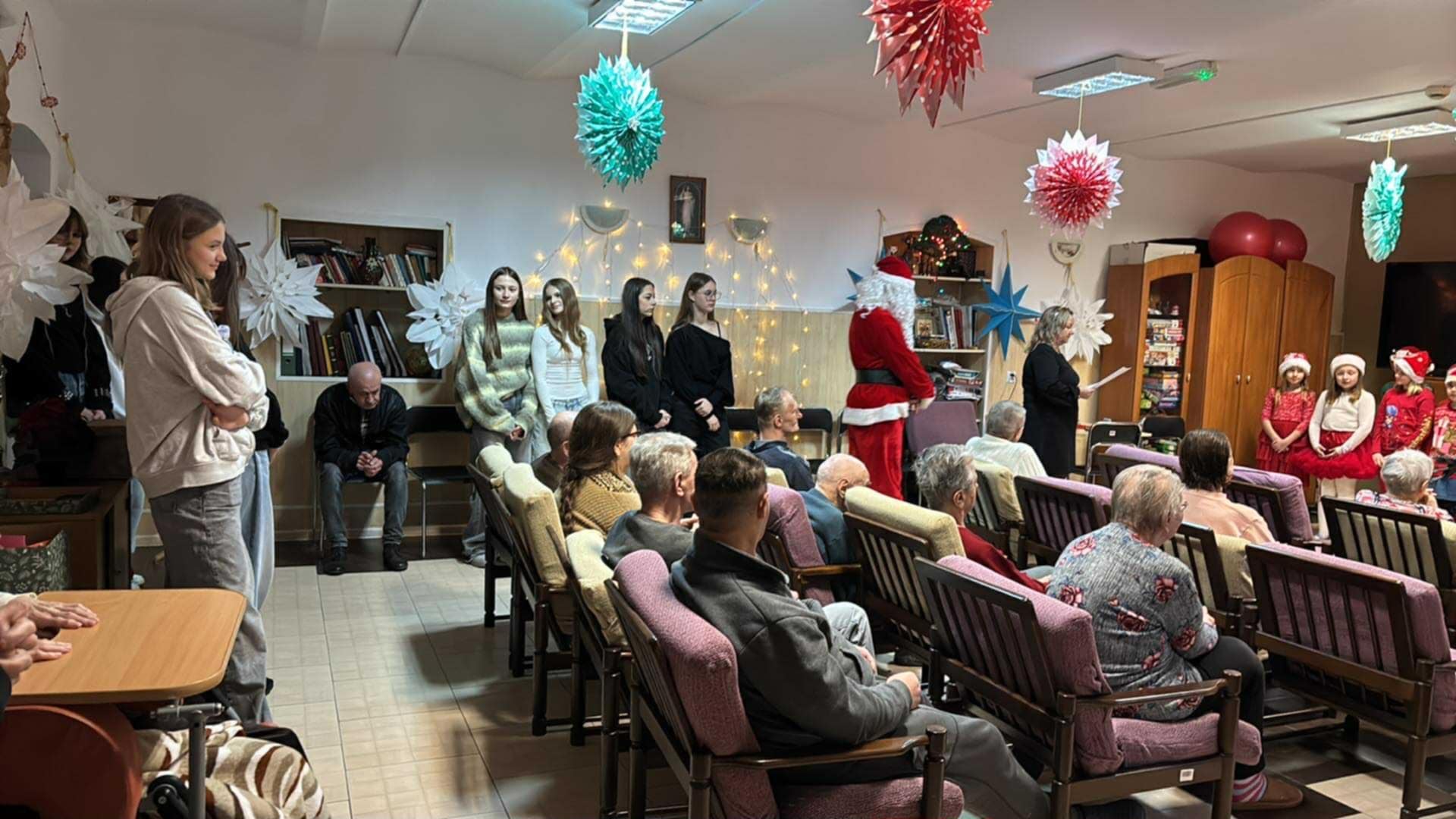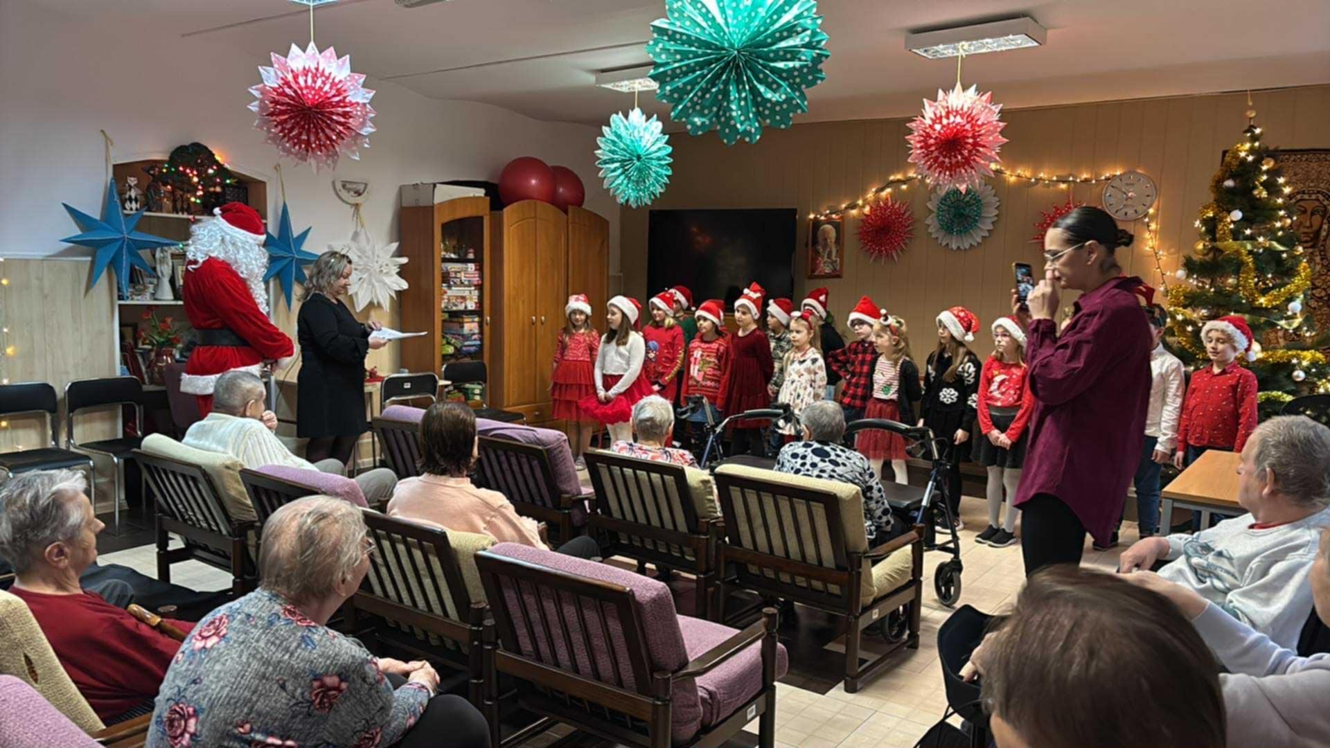 Dziś był szczególny dzień. Zgodnie z tradycją uczniowie klasy 2a oraz członkowie Szkolnego Wolontariatu wraz z paniami: Agnieszką Placzke i Joanną Stawską, odwiedzili Pensjonariuszy DPS. Najmłodsi zaprezentowali swoje umiejętności artystyczne w przedstawieniu bożonarodzeniowym, a Wolontariusze wręczyli Mieszkańcom kartki okolicznościowe oraz upominki przygotowane przez naszą szkolną społeczność. Takie spotkania zawsze są dla nas niezwykle wzruszające i piękne. Magii dopełniła wizyta Świętego Mikołaja. Serdecznie dziękujemy firmie Sensoplast. Pensjonariusze również obdarzyli nas pięknym, własnoręcznie przygotowanym upominkiem. Z całego dziękujemy. Pamiętajmy- ludzka życzliwość czyni świat piękniejszym.