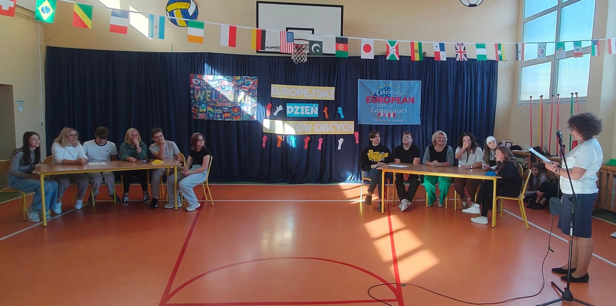 Tegoroczna edycja językowego święta porwała naszych uczniów. Prawie dosłownie. Z takim zapałem przysłuchiwali się zmaganiom zawodników na scenie, że nie mogli się oprzeć i bardzo emocjonalnie reagowali na rywalizację dwóch zespołów. Wygrali żółci, ale wyprzedzili niebieskich tylko o krok (jeden punkcik). Zabawne, ale i wymagające określonej wiedzy konkursy przygotowały panie: A. Jegier, E. Szkudlarek i J. Zawada. Pięknie dziękujemy.