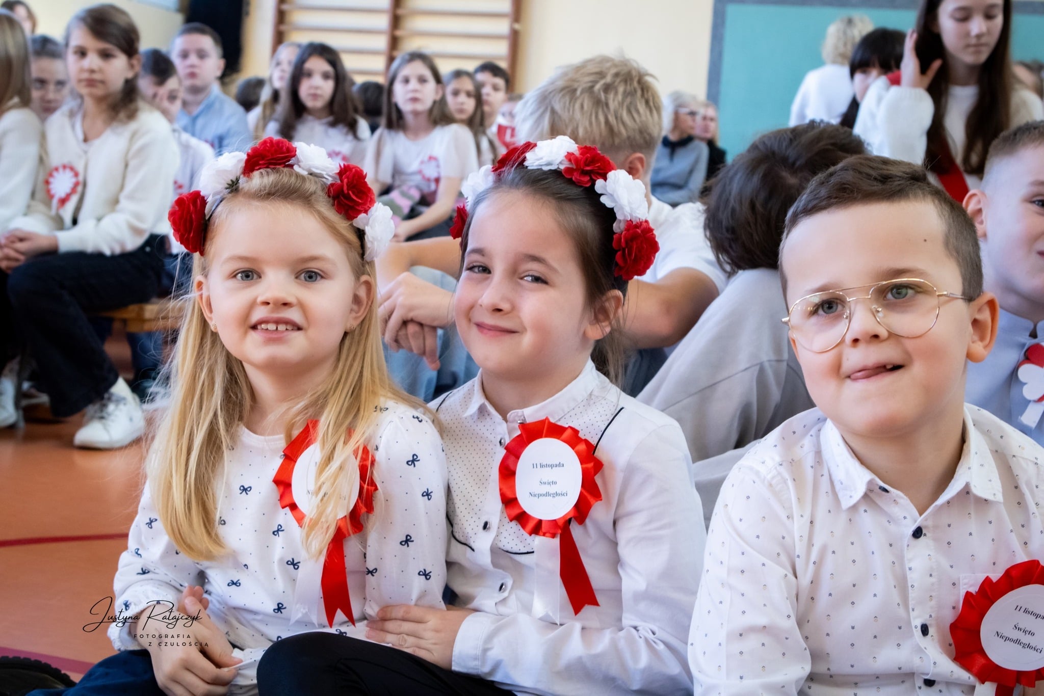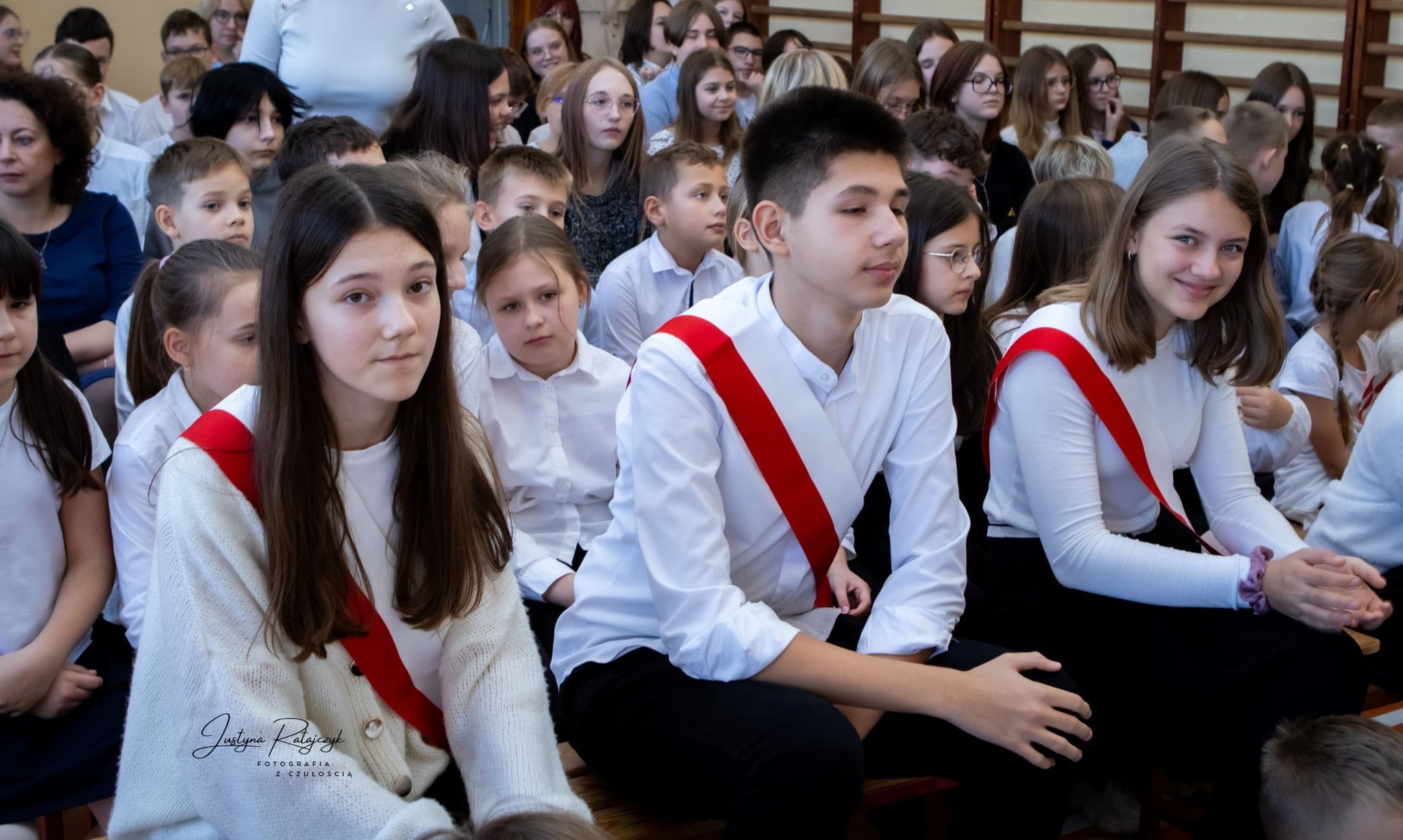 Uczniowie i uczennice klas 2a i 2b zaprezentowali swoje aktorskie i muzyczne talenty podczas wspaniałej akademii z okazji Święta Niepodległości przygotowanej pod kierunkiem pań Agnieszki Placzke i Martyny Łaniewskiej. Widzowie też stanęli na wysokości zadania. Wszyscy w galowych strojach, uroczyście i poważnie.