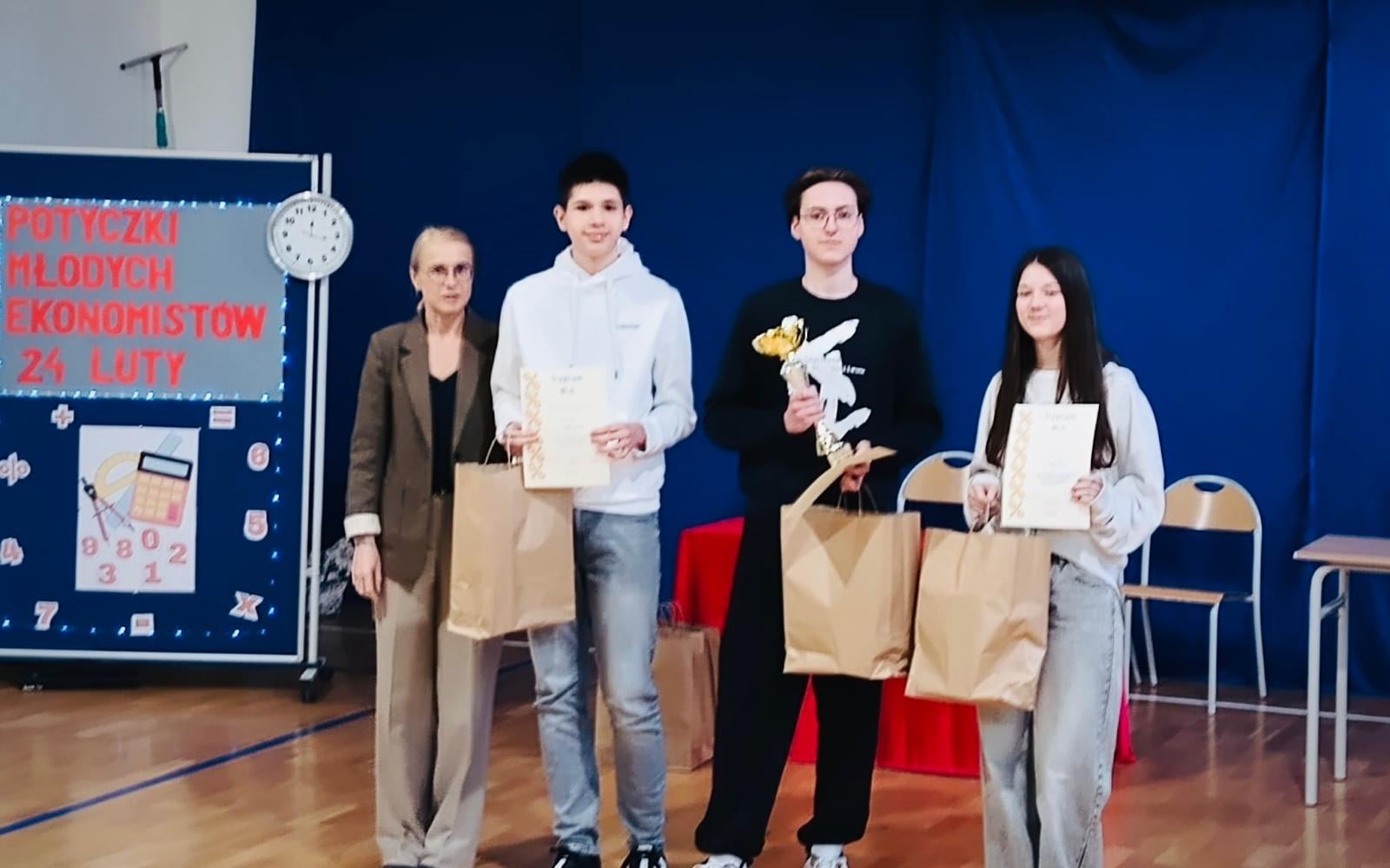 Sukces to mało powiedziane. Nasi zdolni uczniowie: Barbara Grala i Hubert Woźniak z klasy 7a oraz Jan Skotowski z klasy 8a, uczestniczyli wczoraj w I Powiatowym Konkursie "Potyczki Młodych Ekonomistów" dla klas 7-8 szkół podstawowych z terenu powiatu zduńskowolskiego. Uczniowie przystąpili do konkursu zespołowo, ale zadania rozwiązywali indywidualnie. I.... no proszę Państwa, nasi matematyczni giganci zdobyli PIERWSZE MIEJSCE! Serdecznie gratulujemy i uczniom, i panu Łukaszowi Szcześniakowi - opiekunowi naszych mistrzów.