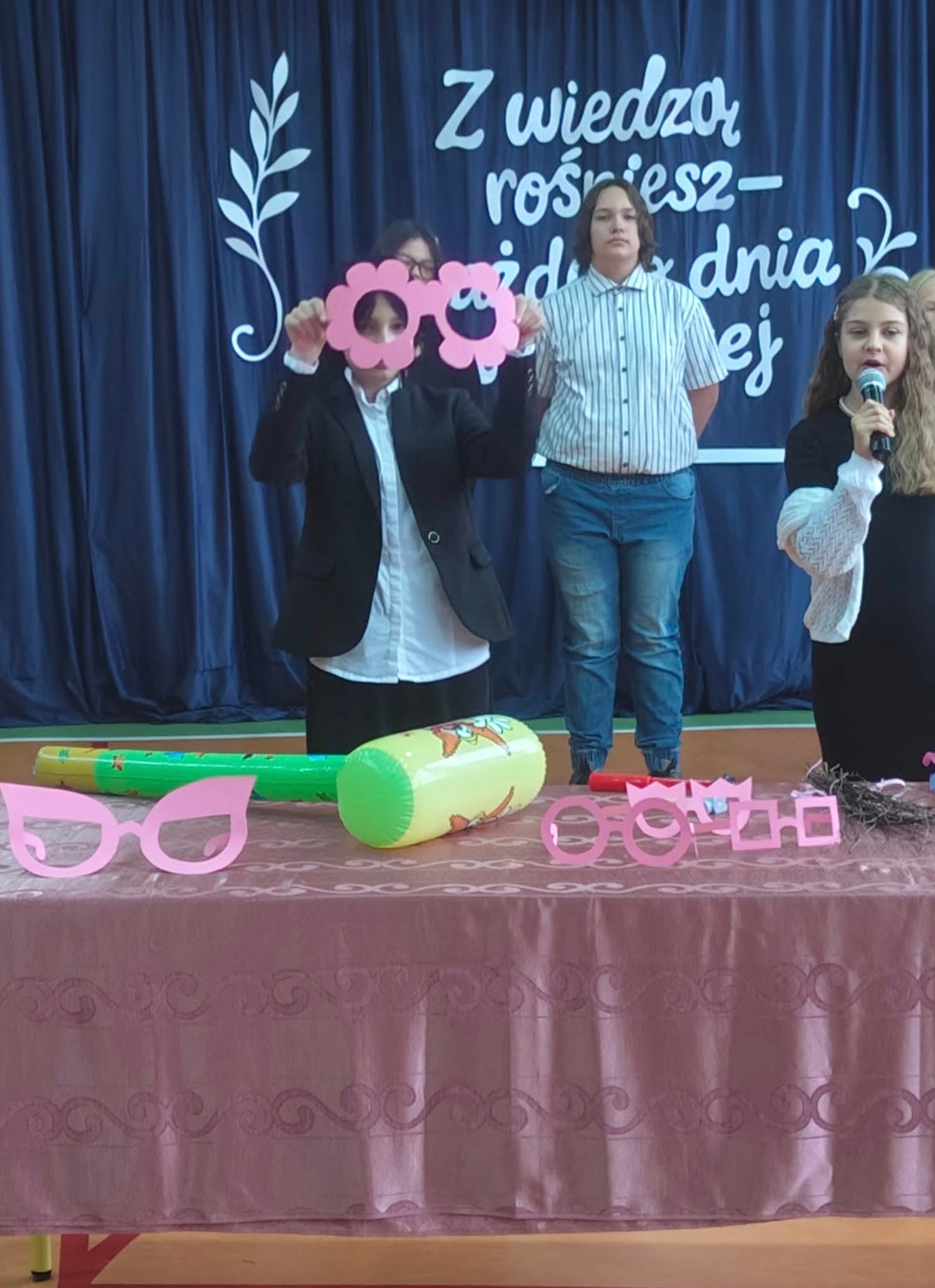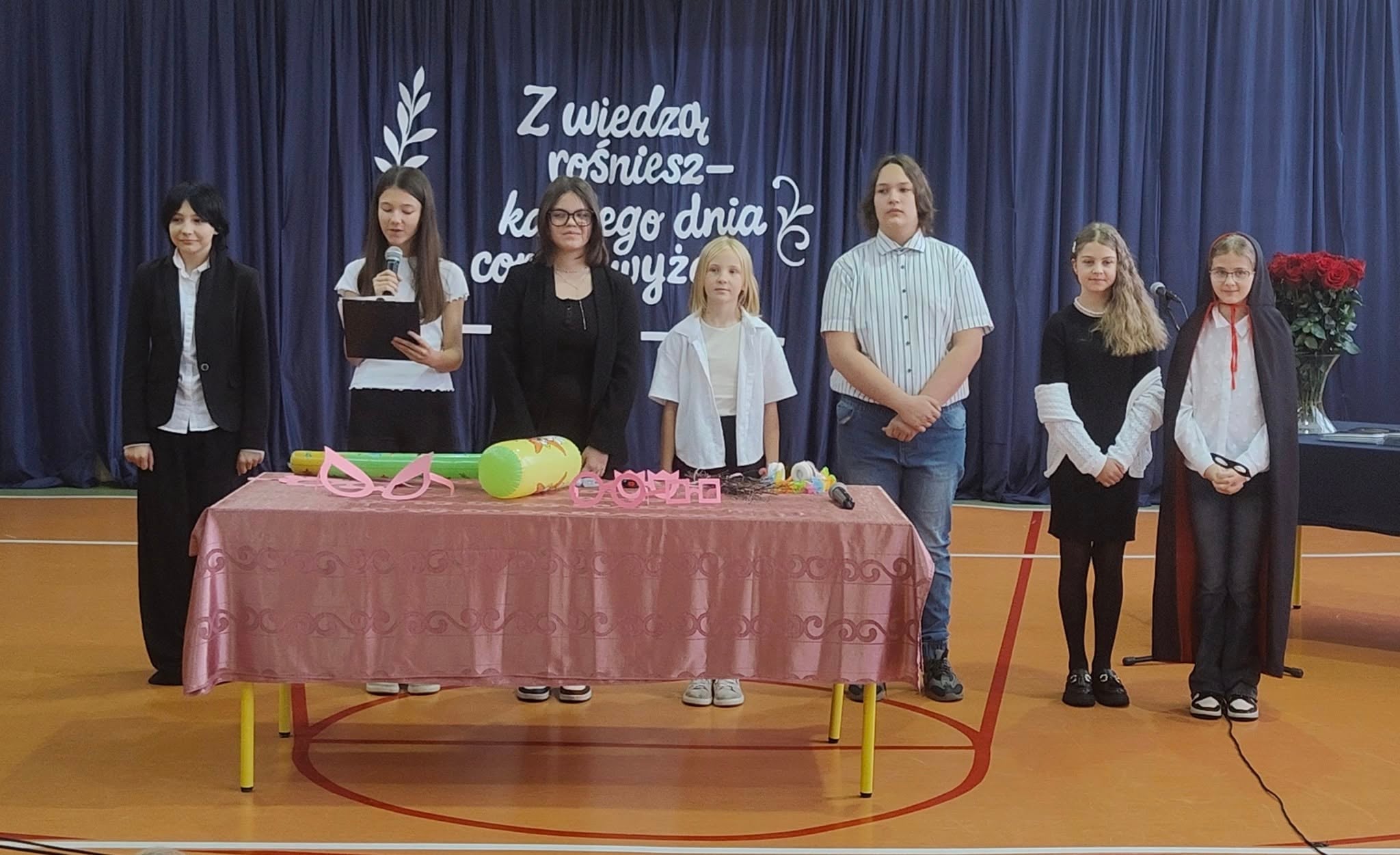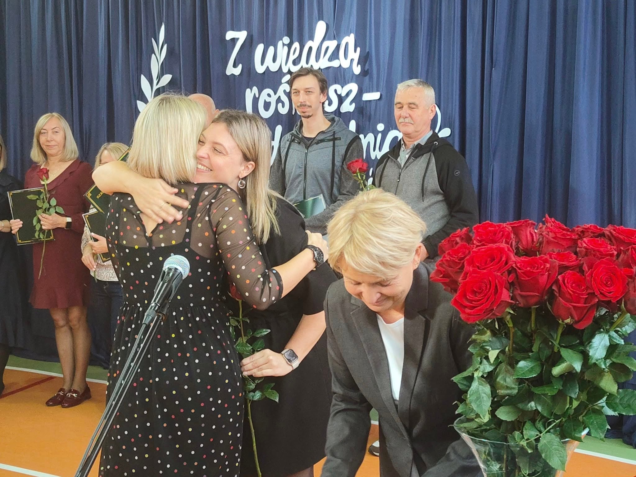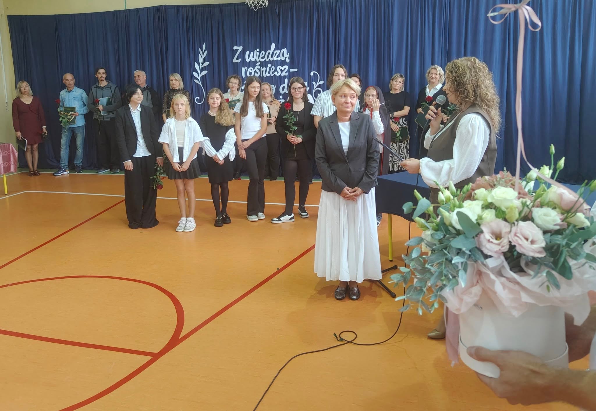 Szkolne uroczystości z okazji Święta Edukacji Narodowej już za nami. Było poważne, uroczyście (wszyscy uczniowie i nauczyciele w galowych strojach), ale i wesoło, kiedy na scenie głos zabrali młodzi aktorzy w kabaretowym przedstawieniu. Pani dyrektor Ewa Madalińska wręczyła wyróżniającym się pracownikom szkoły nagrody, a i sama otrzymała piękny bukiet, taki od serca, od naszej szkolnej społeczności.
