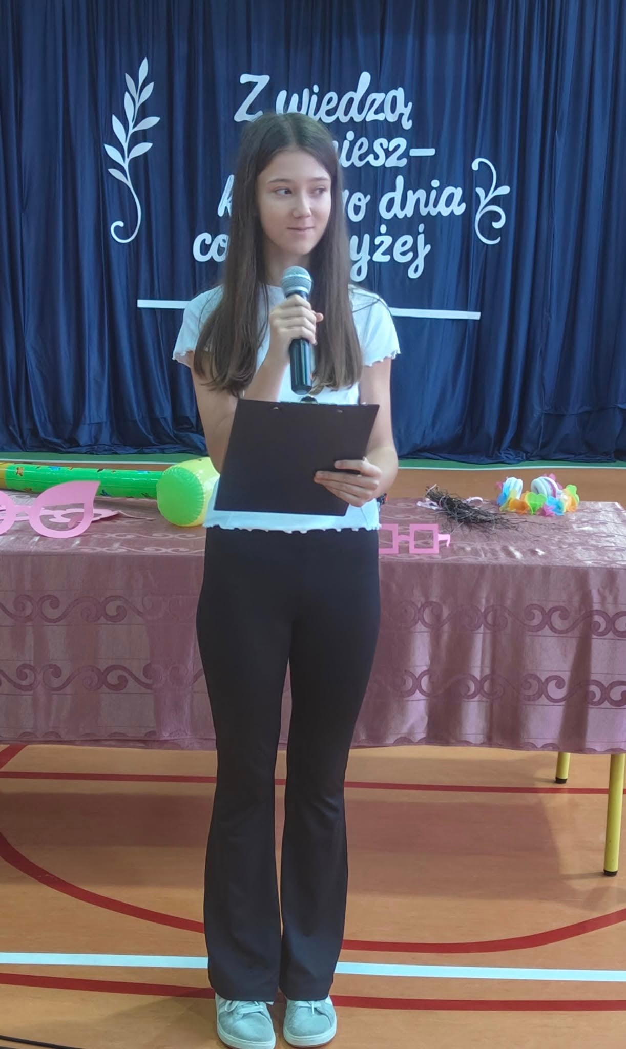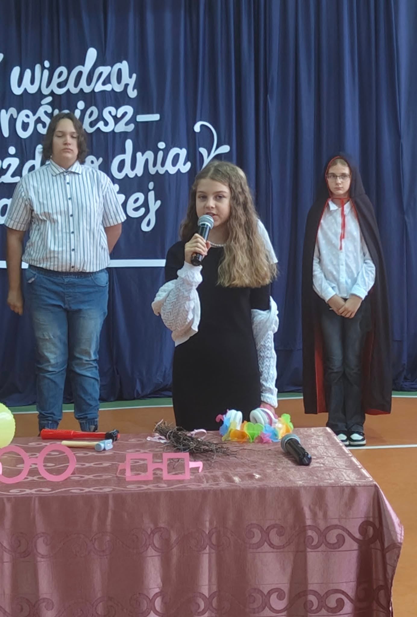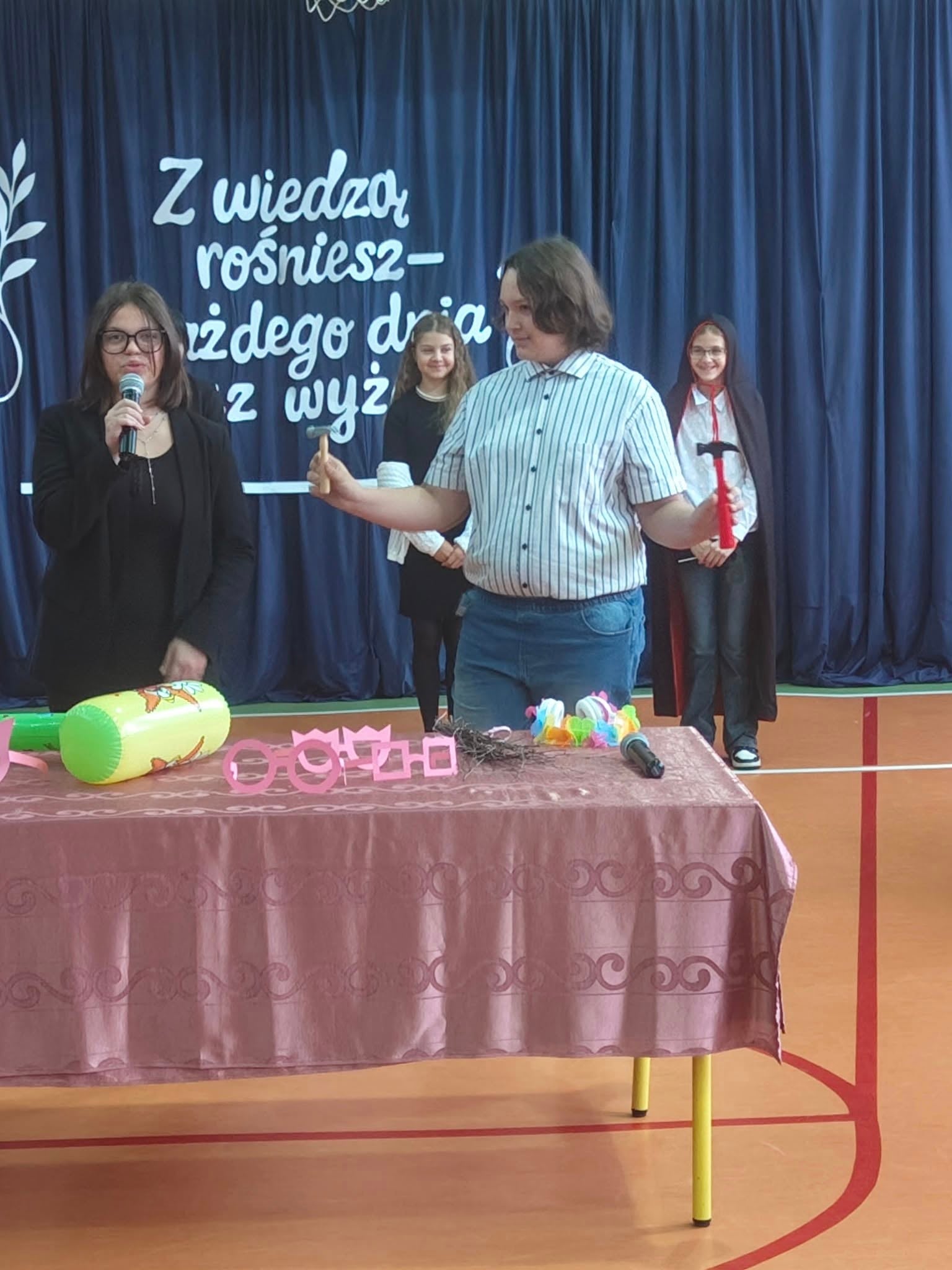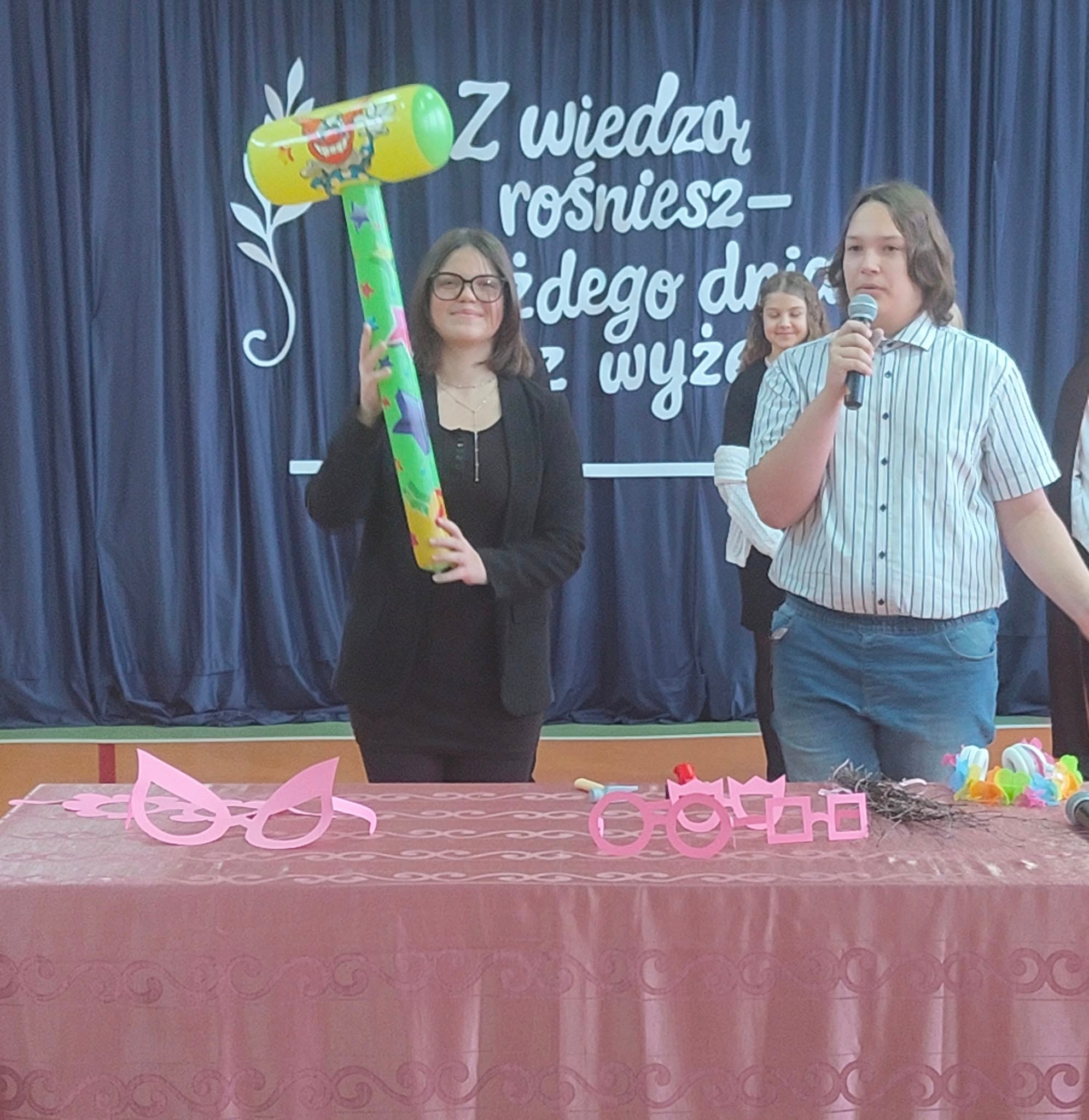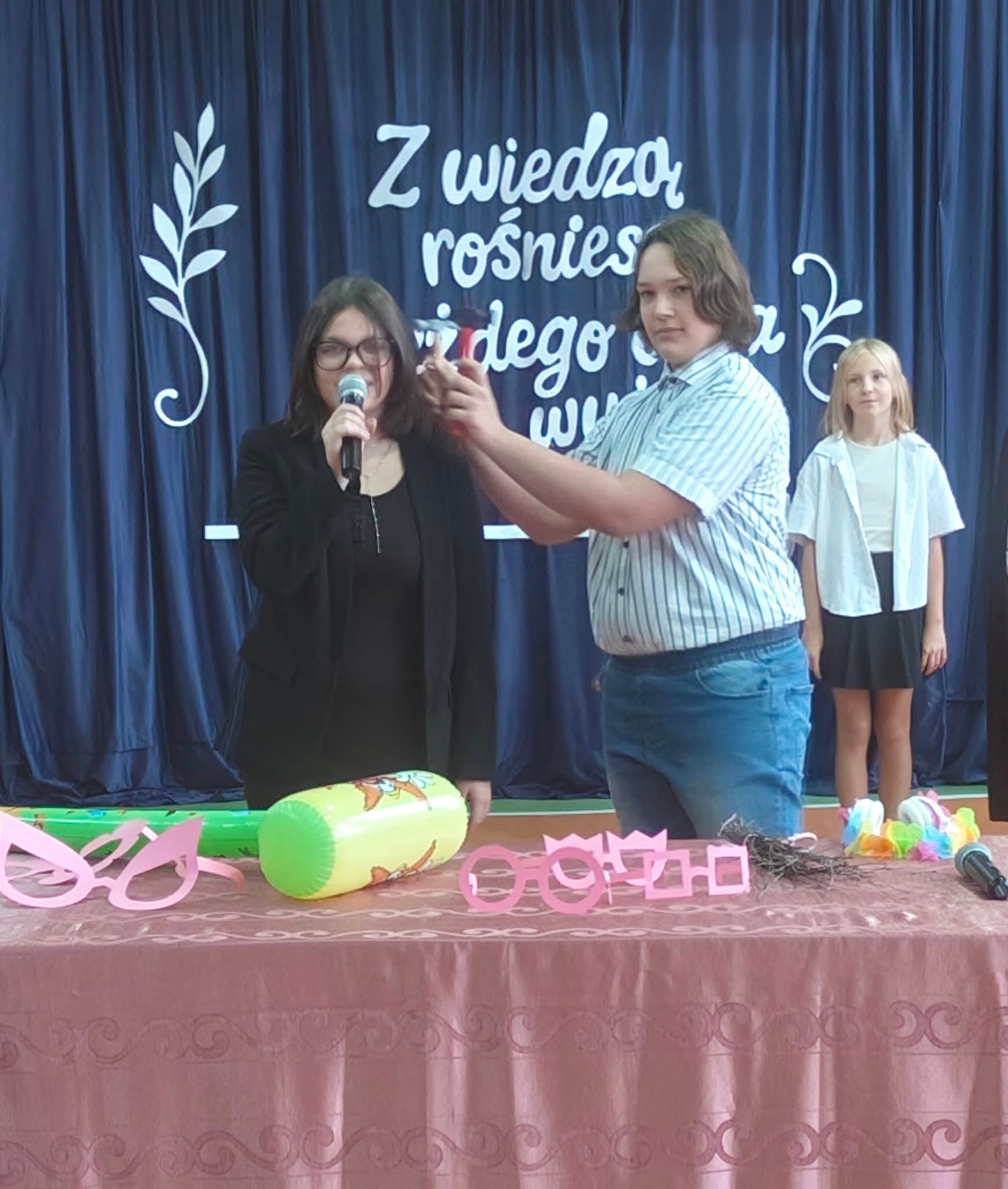 Szkolne uroczystości z okazji Święta Edukacji Narodowej już za nami. Było poważne, uroczyście (wszyscy uczniowie i nauczyciele w galowych strojach), ale i wesoło, kiedy na scenie głos zabrali młodzi aktorzy w kabaretowym przedstawieniu. Pani dyrektor Ewa Madalińska wręczyła wyróżniającym się pracownikom szkoły nagrody, a i sama otrzymała piękny bukiet, taki od serca, od naszej szkolnej społeczności.
