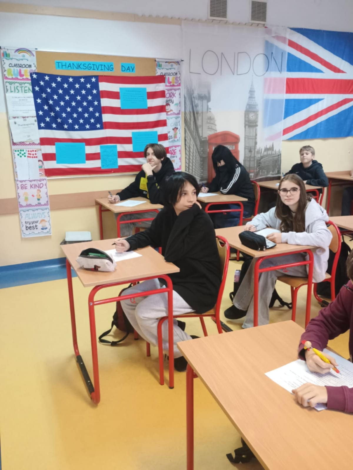 W związku z największym amerykańskim świętem - Świętem Dziękczynienia - uczniowie starszych klas naszej szkoły wzięli udział w konkursie wiedzy na temat historii właśnie tego święta. Musieli także wykazać się wiedzą na temat nazw amerykańskich stanów.